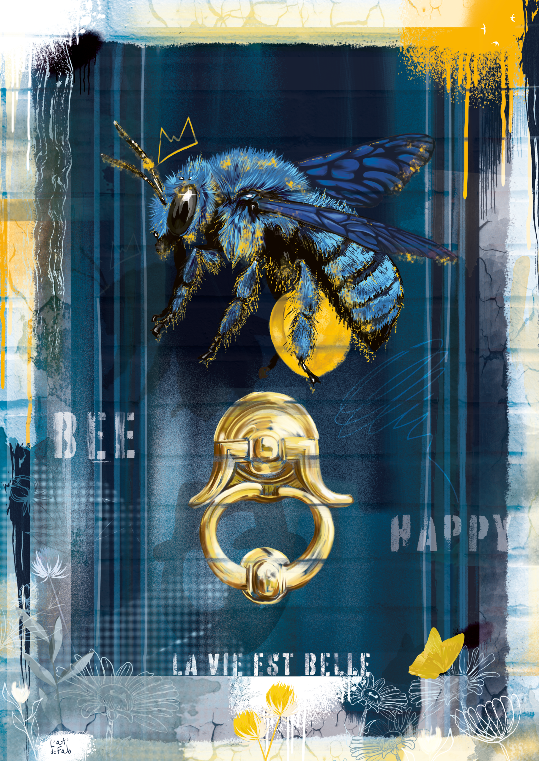 Cette collection d’affiches inspirées du street art propose un regard poétique et urbain sur nos émotions. Avec des messages comme « la vie est belle », L’at’ de Fab exprime une volonté de semer des graines d’optimisme dans l’espace public et dans les esprits.